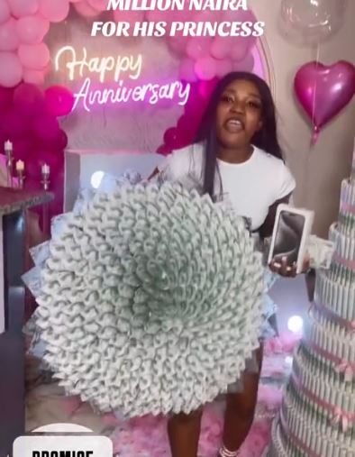 Additionally, he presented cash that spelt out her name using bundles of money, totalling more than 8 bundles.