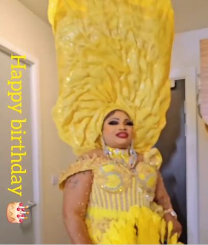 She celebrated her birthday with a very tall head tie, sparking discussion on social media.