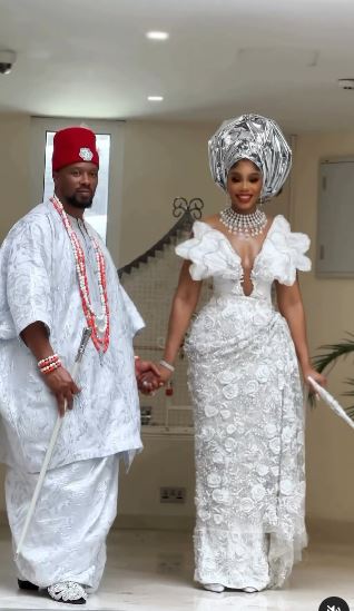Taking to her Instagram page on Thursday, Sharon shared footage from their ongoing traditional wedding with the caption, “Introducing the King of my heart , my absolute King!!!!❤️#loveunitesus24 #crazyaboutus24”