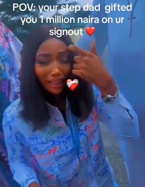 Another video showed the caption: “Your stepdad gifted you ₦1 million at your sign-out.”
