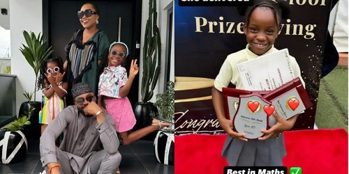 In her words: “My star girl. My head girl. She delivered. Best in Maths. Best In Science. Best in Topic. She also got the behavior role model award. Proud is an understatement.”