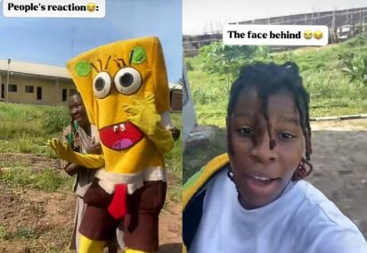 A Nigerian lady has stormed her school dressed as SpongeBob.