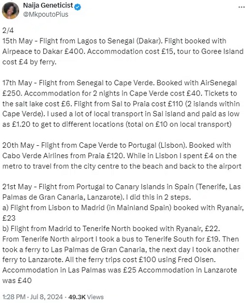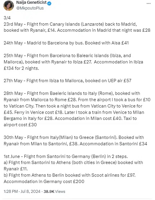 She revealed that she planned and executed the trip herself, applying for a Schengen visa in Lagos, Nigeria.