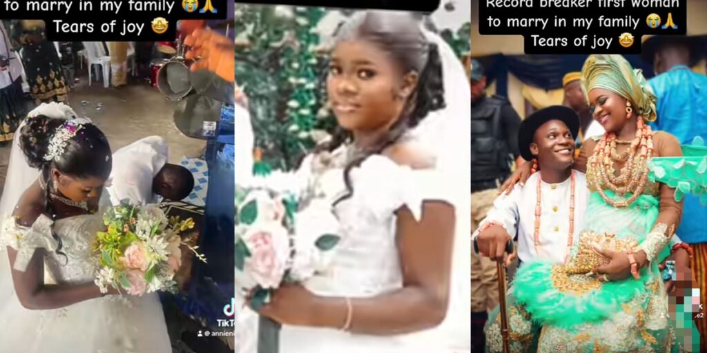 A Nigerian lady has celebrated after making history by becoming the first woman to get married in her entire family.