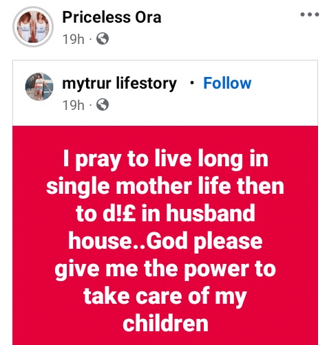 “I pray to live long in single mother life than to die in husband house. God give me the power to take care of my children.