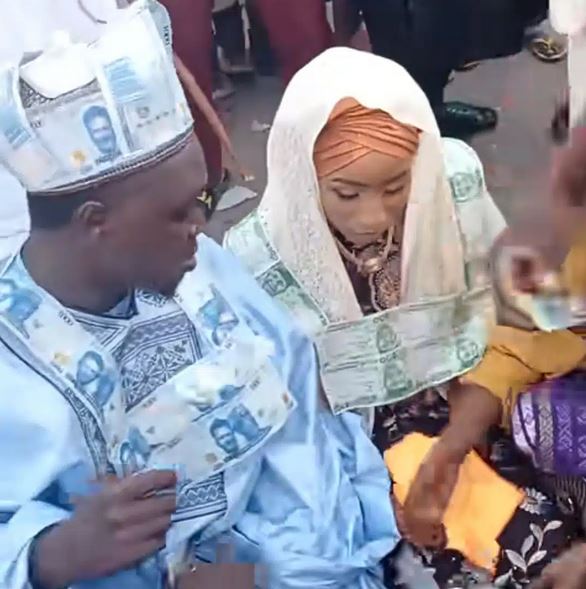 A Nigerian man and his wife have caused quite a stir after a video of them emerged online showing wearing large necklaces made of Nigerian naira notes during their wedding.