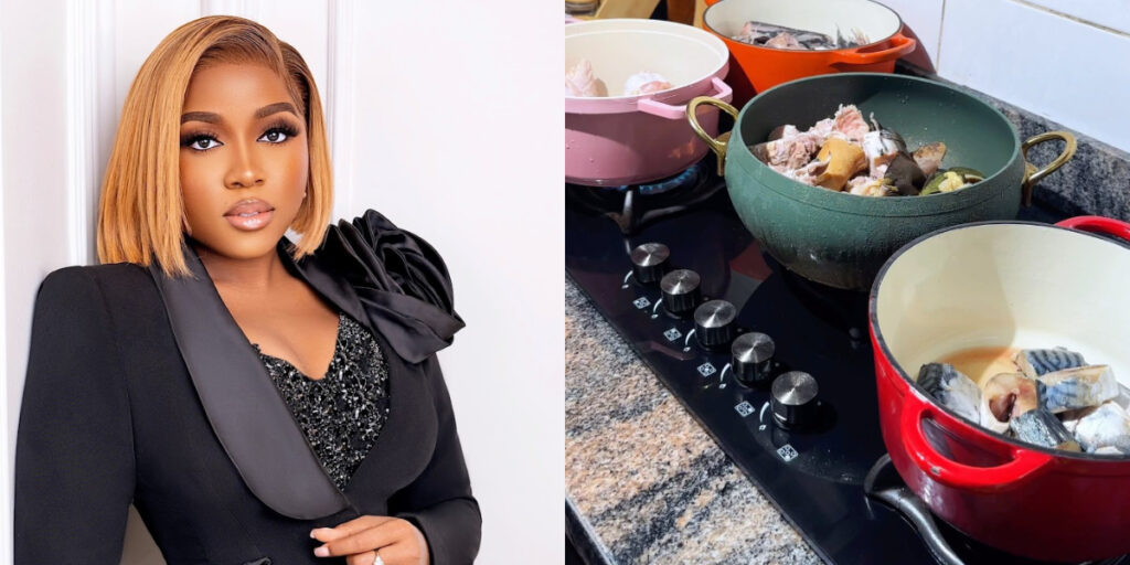 In a video she posted, she stated that she intended to go on a six-day excursion and decided to cook for her husband, Femi Atere, before leaving.