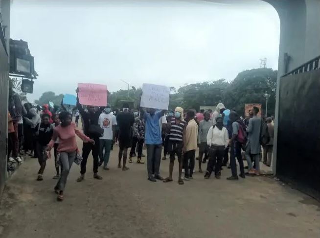The students are currently protesting at the main gate of the institution, DAILY POST reports.