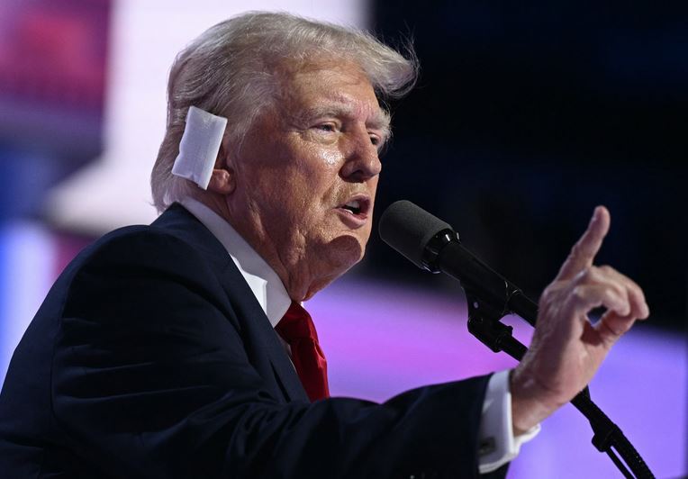 Gunshots had interrupted the former president as he delivered his speech, leaving him with a grazed right ear.