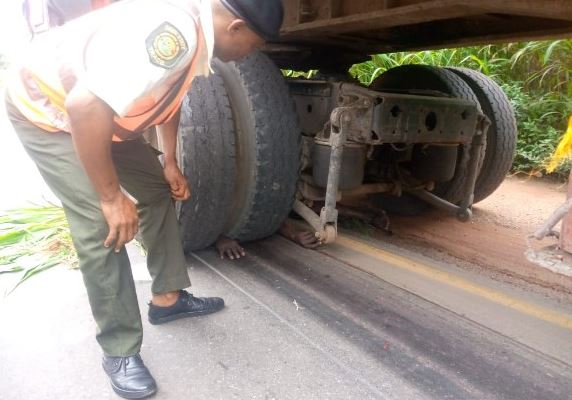 Photographs at the scene of the incident showed the unidentified man trapped under one of the tyres of the truck.