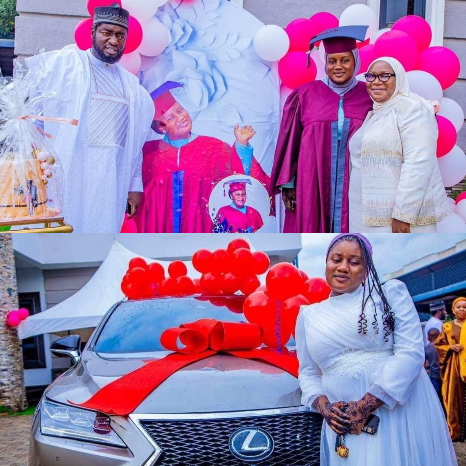 Aisha was said to have excelled in her Unified Tertiary Matriculation Examinations, and to mark the achievement, her father surprised her with the luxury vehicle.