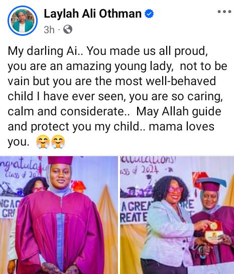 She stated that they are proud of Aisha's performance in school, hence the reason the lawmaker decided to gift her the car.