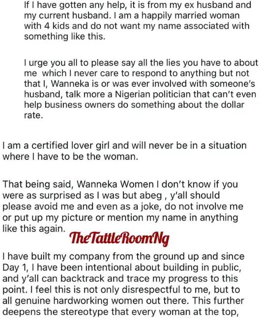 Wanneka, in a now-deleted post, debunked all claims levelled against her by Gistlover.