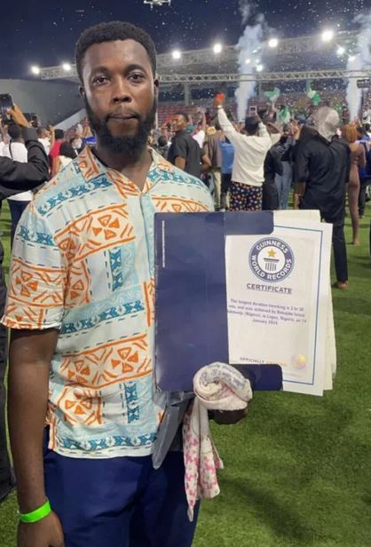 A Nigerian man, Babajide Isreal Adebanjo, has broken the Guinness World Record for the longest duration of twerking, lasting 3 hours and 30 minutes.