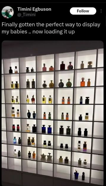 Popular Nigerian actor, Timini Egbuson has shared a photo of his impressive perfume collection.