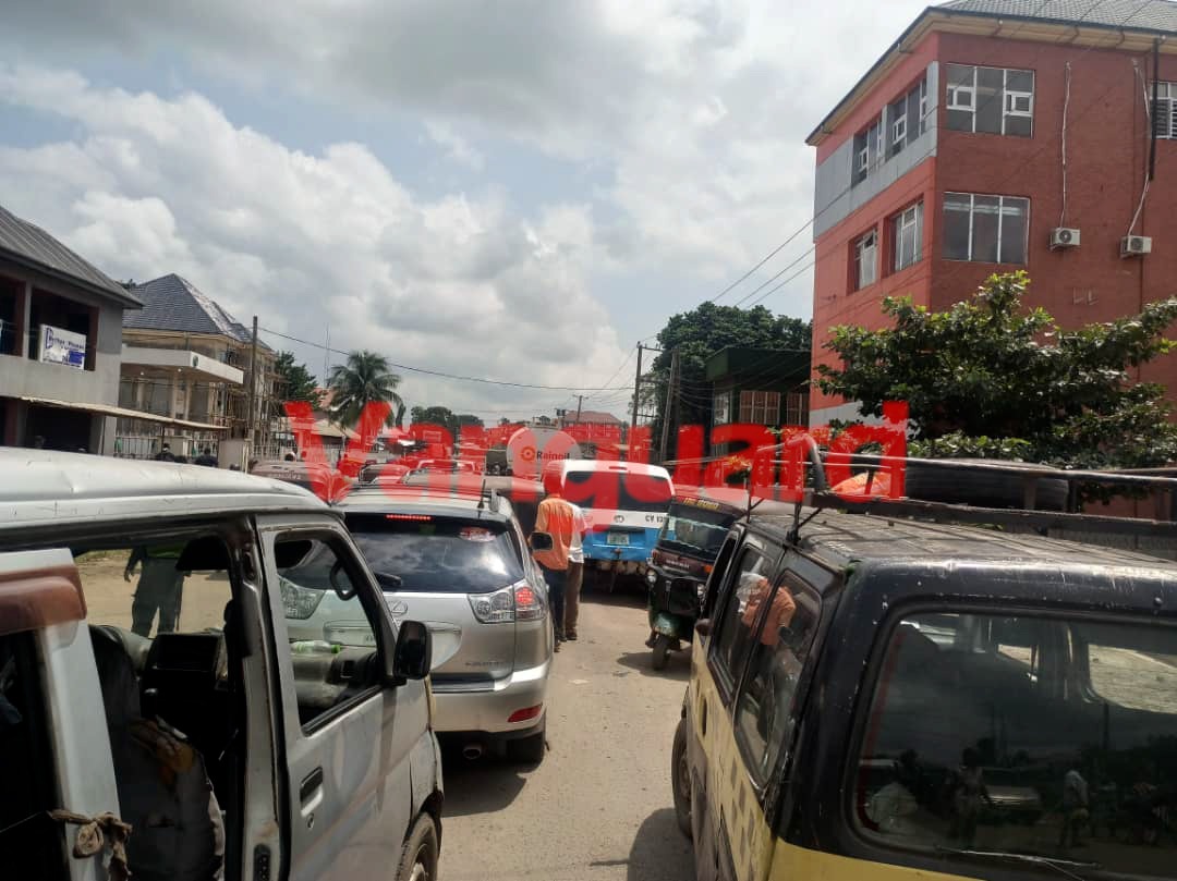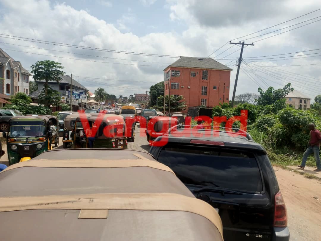 For several hours, traffic movement was completely halted and many vehicles leaving and entering Umuahia capital city via the road got trapped in the traffic.