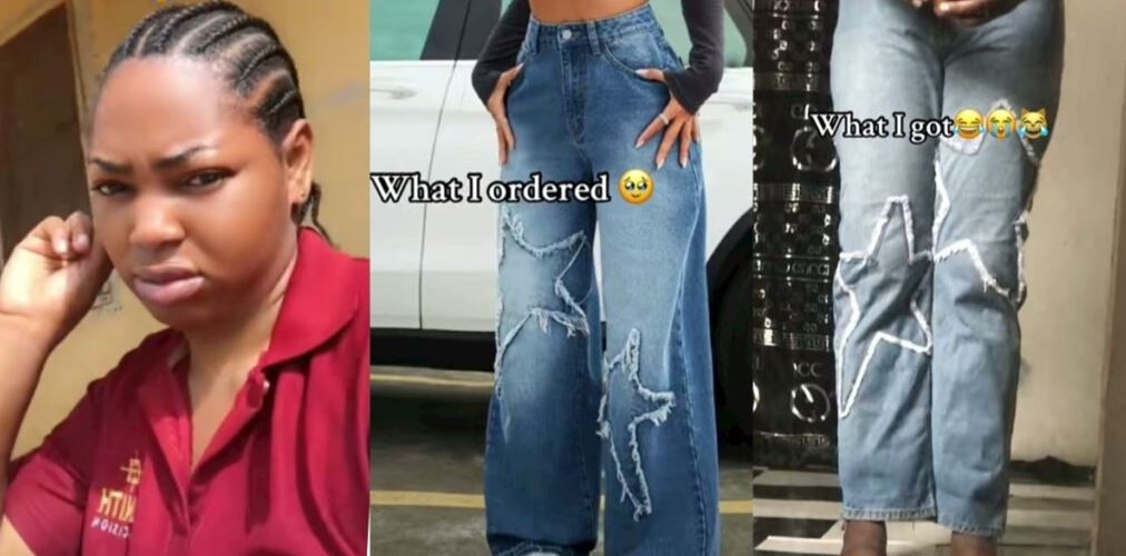 A Nigerian lady has shared a video of the baggy jeans that she ordered online and what was delivered to her.