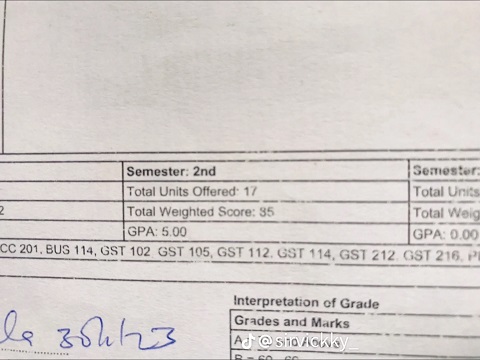 Prince Adestar: “4.90 GPA 💔😞just one course draw me back to achieve my aim.”