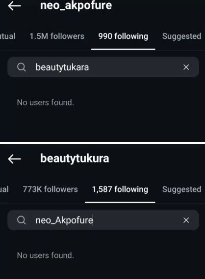 In a shocking development, some fans and “shippers” have observed that Beauty and Neo have unfollowed one another on Instagram once again.