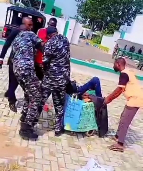 In a trending video on social media platforms, security operatives securing the Bauchi Government House were sighted wrestling with one Hamza Waziri, a person living with disability, in his wheelchair.