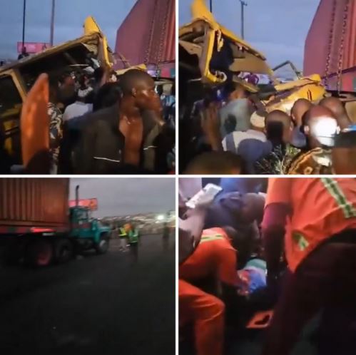 Two persons were rescued on Tuesday, August 6, after a commercial bus rammed into a containerised vehicle in Lagos state.