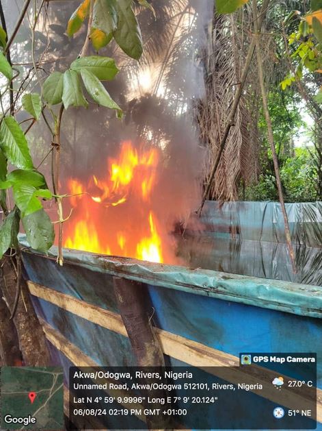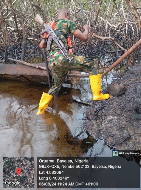 Similarly, in Bayelsa State, troops of Sector 2, while conducting routine operations in the creeks, waterways and rivulets along Dasaba Creek in Nembe LGA, confiscated over 12000 litres of stolen and illegally refined products.