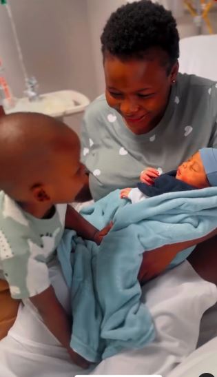 The video showed the moment their father brought the little boy to the hospital where his mum and the new baby were being tendered to.
