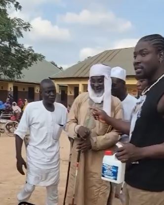 Controversial Nigerian activist, Martins Otse aka VeryDarkMan has stormed the home of people with disabilities in Abuja with Prophet Jeremiah Fufeyin’s holy water, to test its potency.