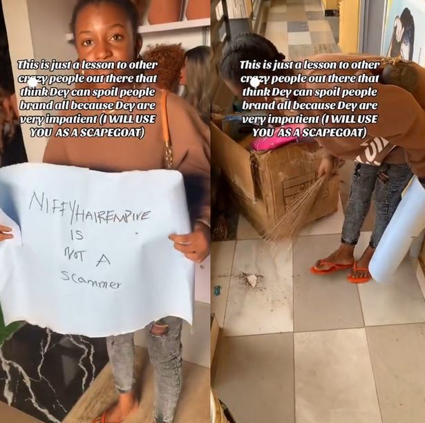 The hair vendor eventually got hold of the customer and made her carry a placard to tell the world that she was not a scammer.