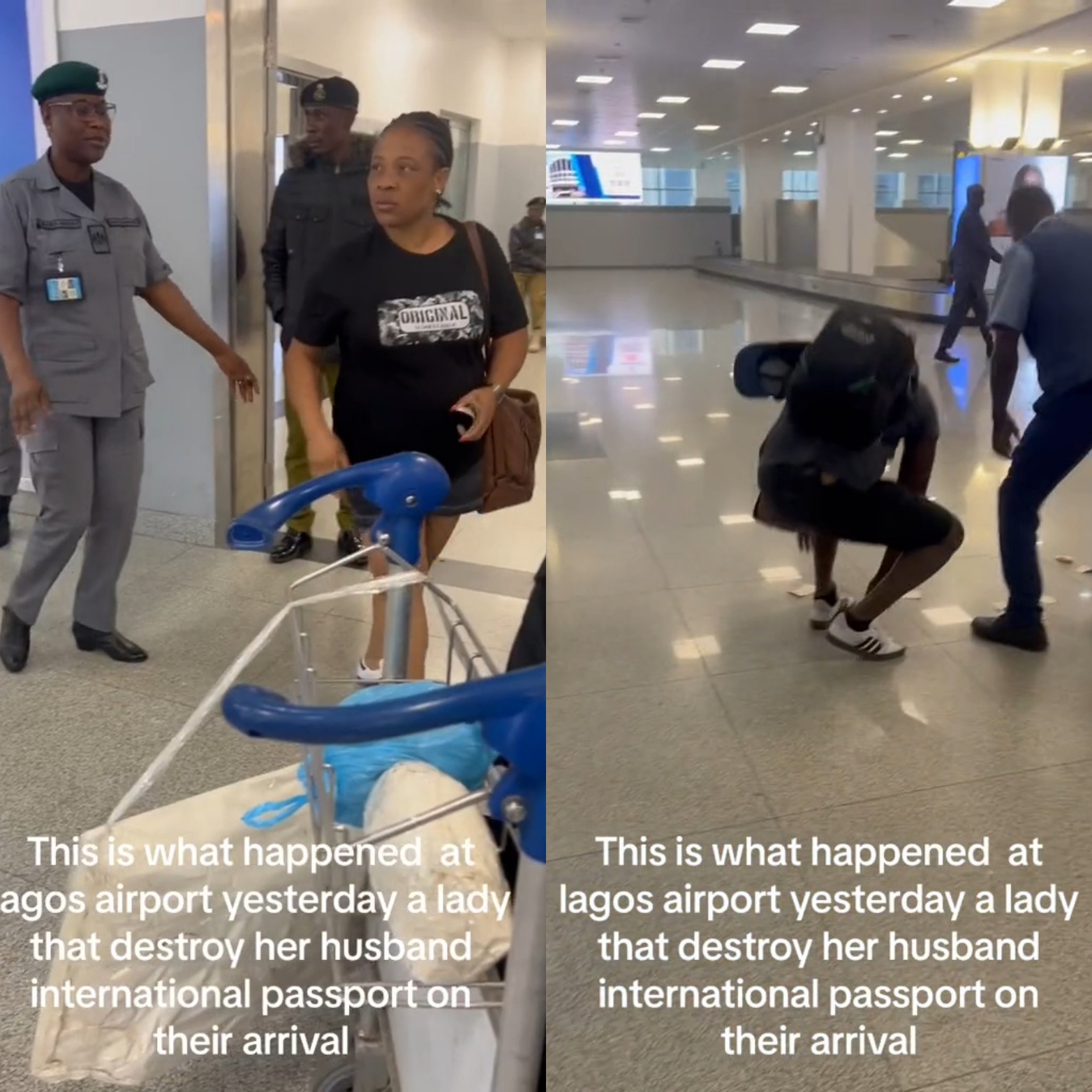The video showed a female traveler tearing a Nigerian Standard Passport.