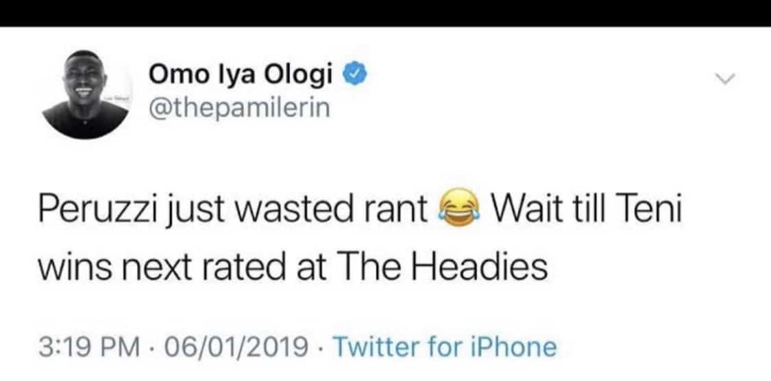 Recall that in 2019, Pamilerin had taken to Twitter to mock Peruzzi for losing the Headies.