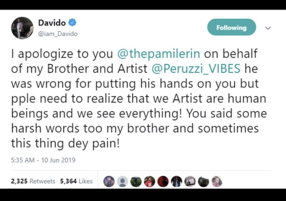 Even Davido, the singer's boss also issued an apology on his behalf.