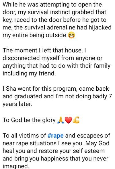 To all victims of r*pe and escapees of near r*pe situations I see you. May God heal you and restore your self esteem and bring you happiness that you never imagined