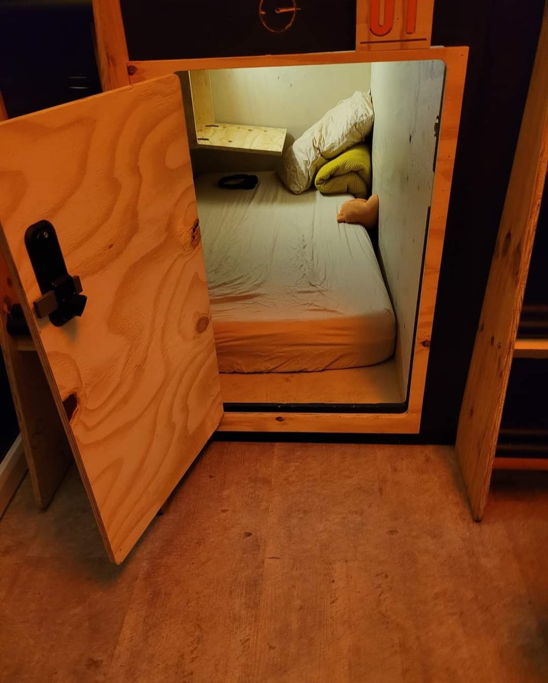 He shared photos of the sleeping boxes, several of which were built into a room and closed with wooden doors.