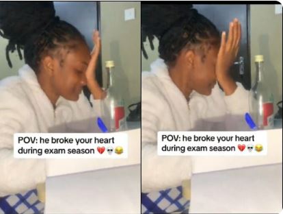 Lady Weeps Helplessly While Studying After Boyfriend Dumped Her During Exam (Video)