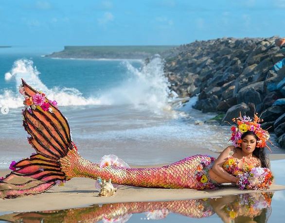 Popular Nigerian crossdresser, Idris Okuneye aka Bobrisky has stunned his fans after he shared photos of himself at the beach wearing a mermaid costume.