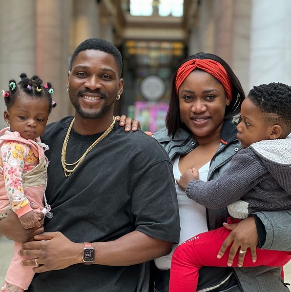 To celebrate the milestone, the former BBNaija star shared a photo of his family while assuring his wife of his love.