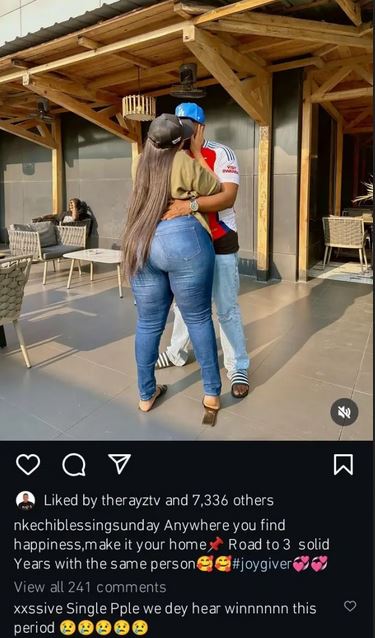 Nkechi who is counting down to 3rd anniversary with her younger lover, Xxssive accompanied her message with a photo of her kissing her man.