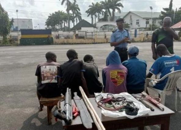 “The suspects were found in possession of one pump-action gun, five cartridges, two daggers, a cutlass, and various criminal charms.”