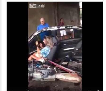 Omg! Woman Sits Back and Applies Make-up After Surviving Horrible Car Crash with Boyfriend Seriously Injured (Video)