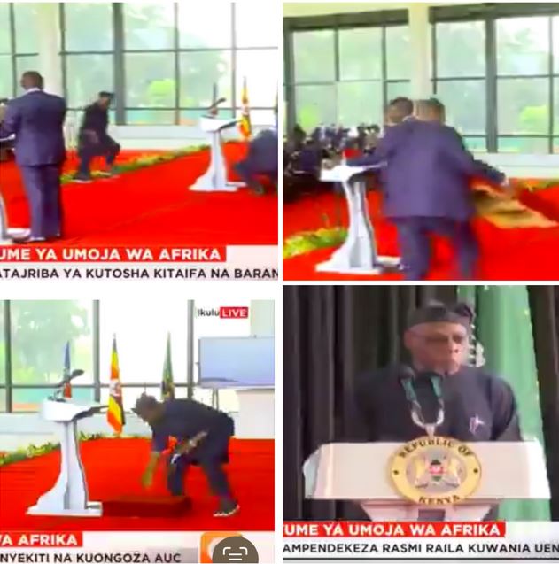 While he approached the podium, a hilarious incident happened between him and a Kenyan government official.