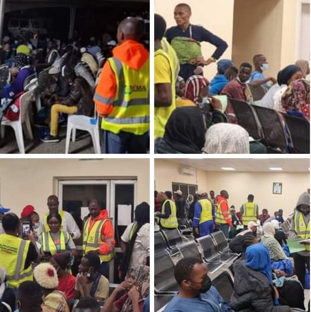 "The NEMA Lagos Territorial Office LTO officers along with other stakeholders such as Nigeria Immigration Service, IOM, Port Health, Federal Airport Authority (FAAN), NAPTIP and NCFRMI, were on ground to provide basic humanitarian support for the returnees upon their arrival.