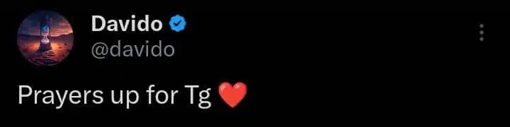 Reacting, Davido asked his followers on his X page to pray for TG Omori’s health.