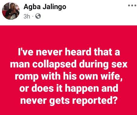 The CrossRiverWatch publisher stated that he has never seen reports about men collapsing during s3x romps with their wives.