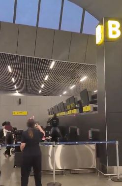 The man then smashed several computer screens on the check-in counter, the clip shows.