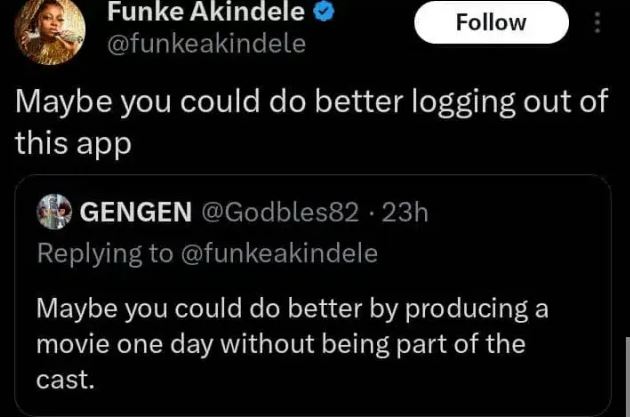 Specifically, @Godbles82 proposed that Funke Akindele’s movies might achieve greater success if she were to produce them without also appearing in the cast.