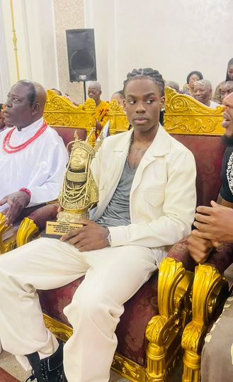 The Oba presented the plaque to Rema on Thursday when the singer paid him a visit at his palace ahead of his homecoming concert at the Ogbe Stadium in Benin City.