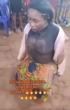 The video captures the moment the woman began dancing while the deliverance session was on.