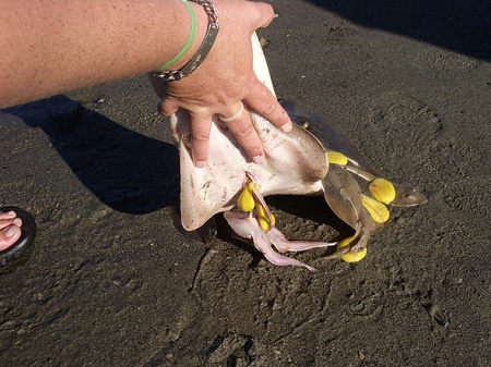 The guitarfish delivered on land safely