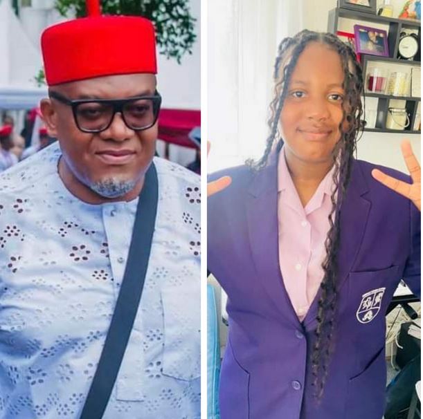 "AdaEzeudo Goes To School. My daughter Lotanna is starting secondary school today. She is posing here in her new hairstyle which she and Ugomba conspired to take £100 from me for," he wrote.